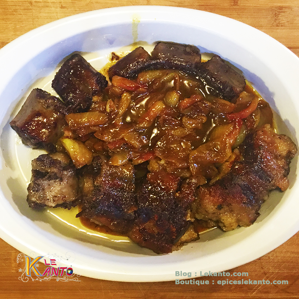 Tout l’assaisonnement de la queue de bœuf se fait en début de cuisson. En effet, outre le cumin que l’on met dans l’huile pour faire revenir l’oxtail, le curry et la cannelle suivent immédiatement.